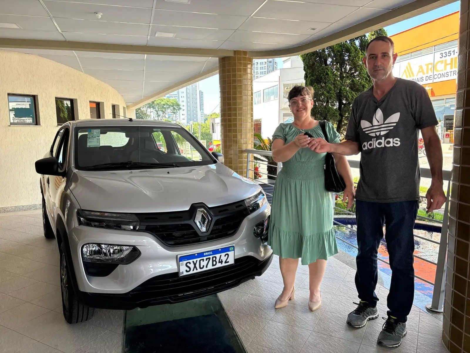O mecânico José Luís da Silva foi o ganhador do Kwid 0km, com o cupom que recebeu ao comprar na Mega Motos. Ele foi acompanhado da esposa, Angela Maria Fischer, receber a chave do carro. O casal, que mora no bairro São Pedro, só teve a confirmação de que foi premiado agora em janeiro, já que a CDL não conseguiu contato com eles depois do sorteio.