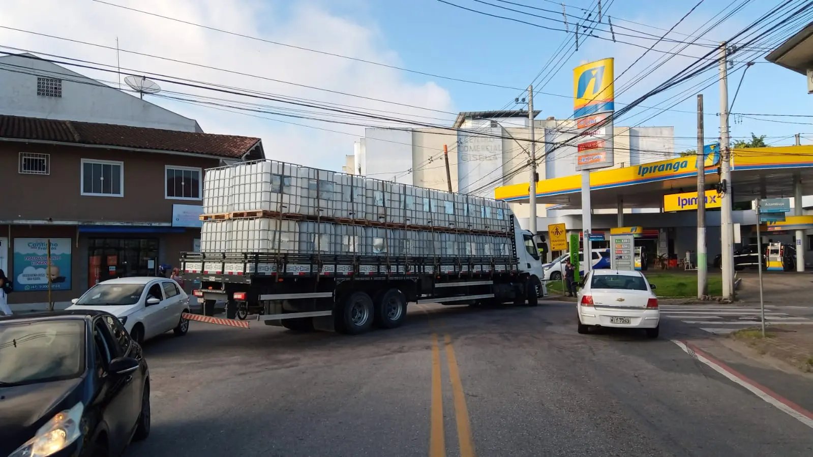 Um caminhão parou o trânsito no bairro Azambuja, em Brusque, na manhã desta segunda-feira (31). O incidente ocorreu no cruzamento das ruas Bulcão Viana, Azambuja, Tiradentes e Gustavo Richard.