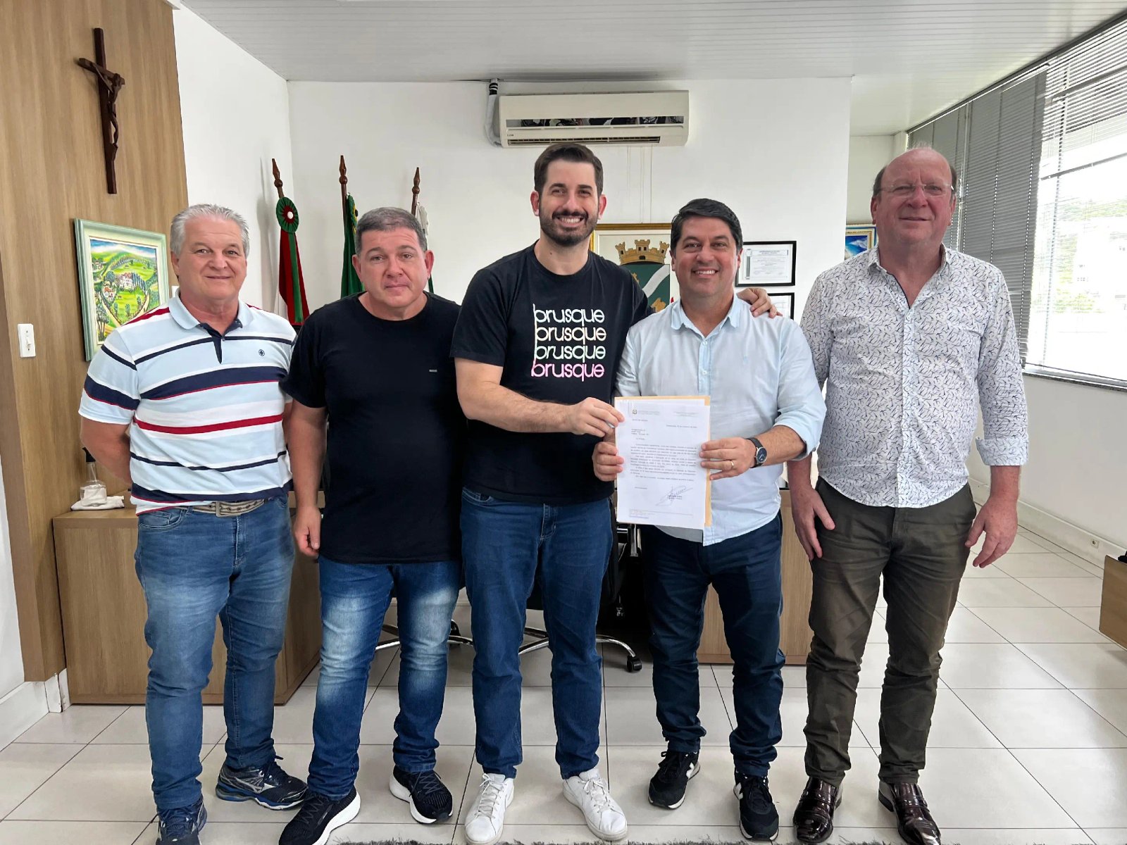Na tarde desta sexta-feira (6), o prefeito de Brusque, André Vechi (PL), recebeu o deputado estadual Emerson Stein (MDB), que destinou R$ 300 mil ao município através de uma emenda parlamentar. O vereador Rogério dos Santos (Republicanos) também esteve presente na ocasião.