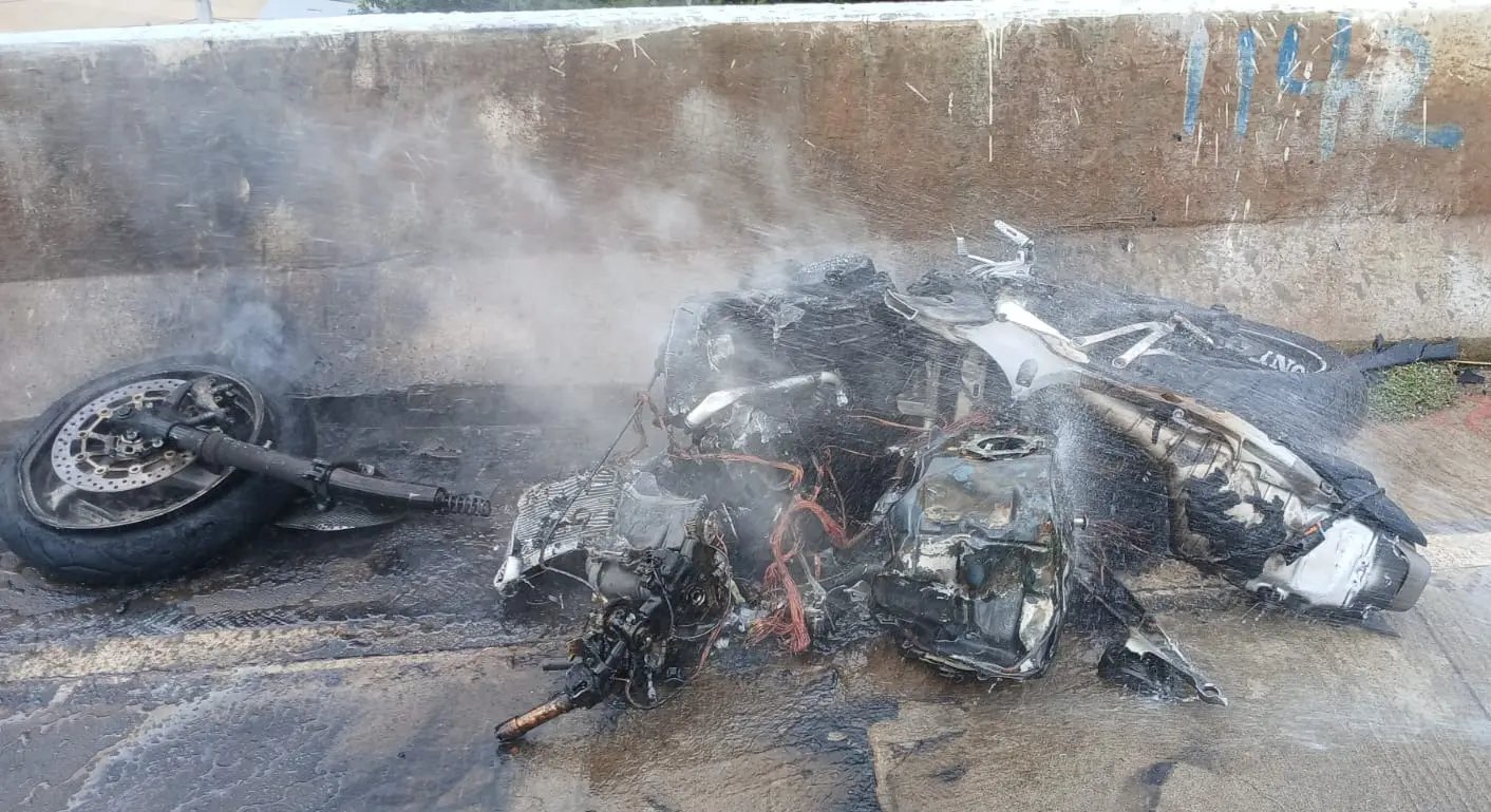 Moto pega fogo e motociclista morre após colisão com caminhão