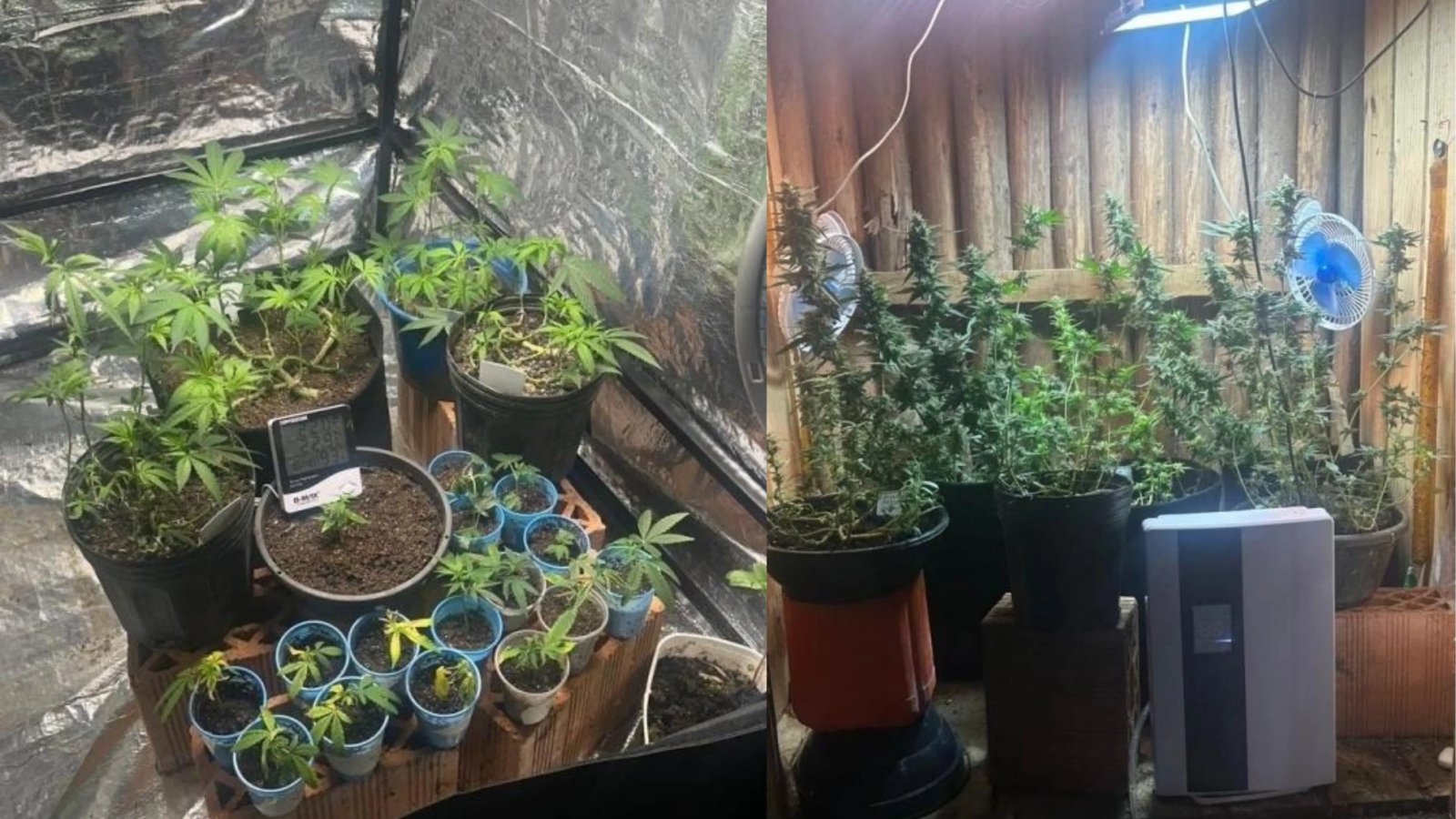 Durante a vistoria, os policiais encontraram duas estufas adaptadas para cultivo, com sistemas de iluminação temporizada e ventilação. Ao total, foram apreendidos cinco pés adultos e 15 mudas da droga em um dos cômodos da casa, além de seis pés adultos da variedade skunk.